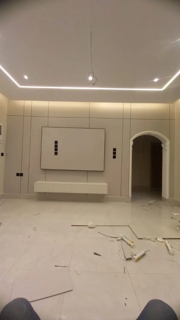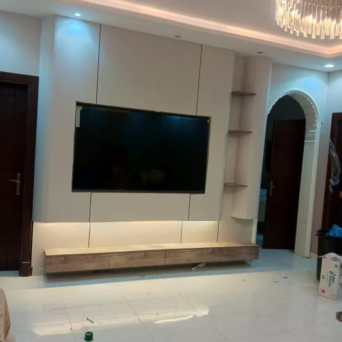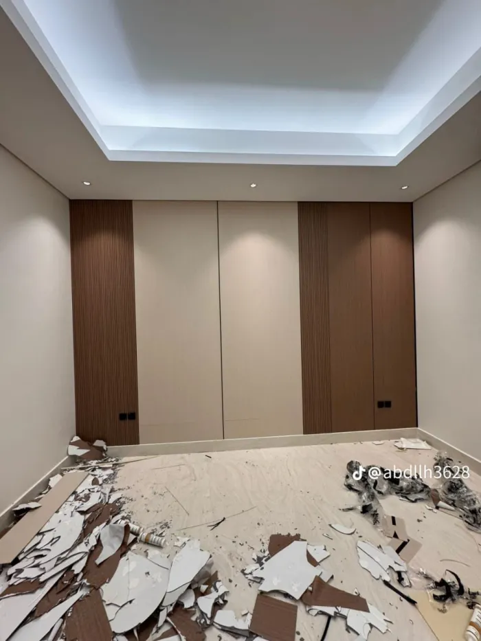 - الجدران ثلاثية الأبعاد: باستخدام الألواح الجبسية أو المصنوعة من الألياف، يمكن خلق تأثيرات بارزة ومتموجة تُحوّل الحائط إلى مجسم فني حقيقي، خاصة عند دمجها مع إضاءة مخفية.