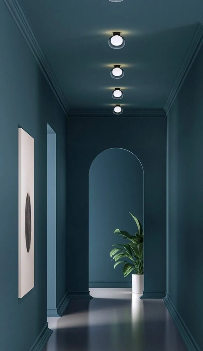- اللمسات الجريئة العميقة: يتم اختيار حائط واحد فقط لطلائه بلون قوي مثل الأخضر الزمردي، الأزرق الكحلي، أو حتى الأسود الجريء. هذا الحائط يلعب دور "نقطة الجذب الأساسية" في الغرفة.