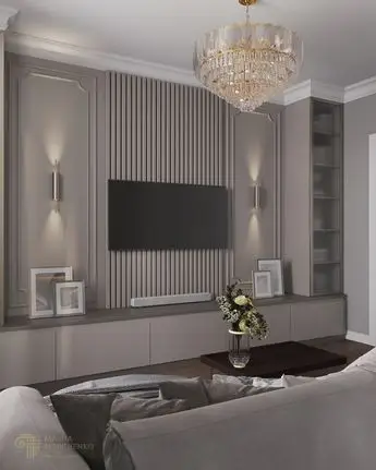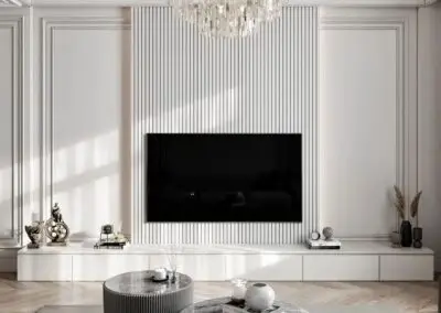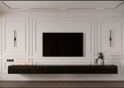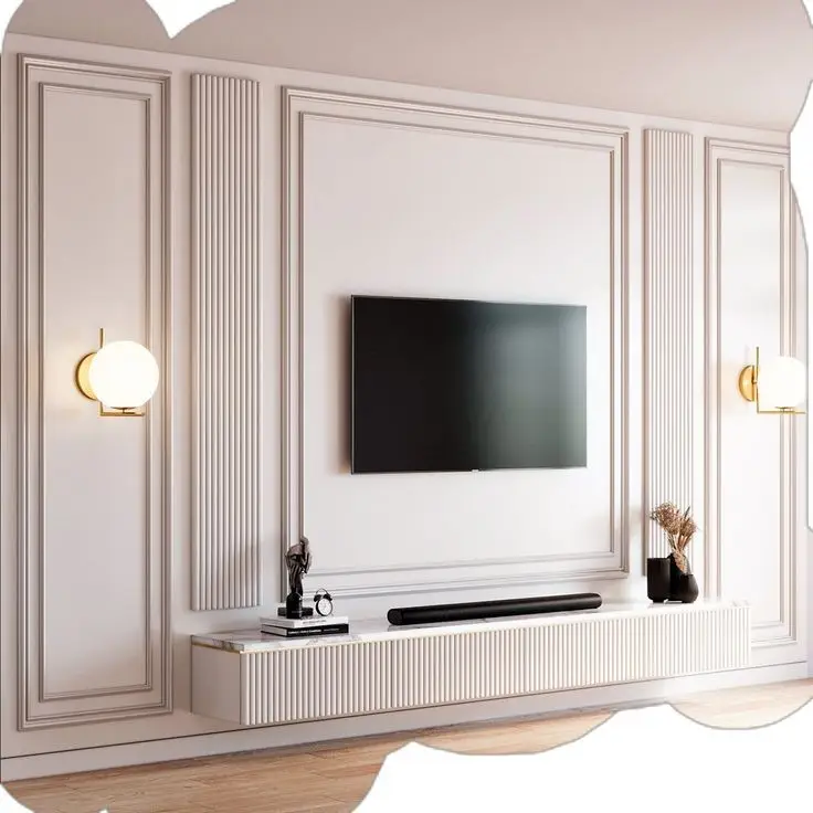اللمسة البسيطة: يُستخدم هذا الإطار لتحديد المنطقة دون الحاجة إلى رفوف كثيرة، مما يحقق تصميم شاشة تلفزيون بسيط وأنيق.