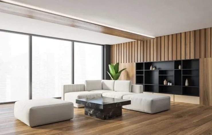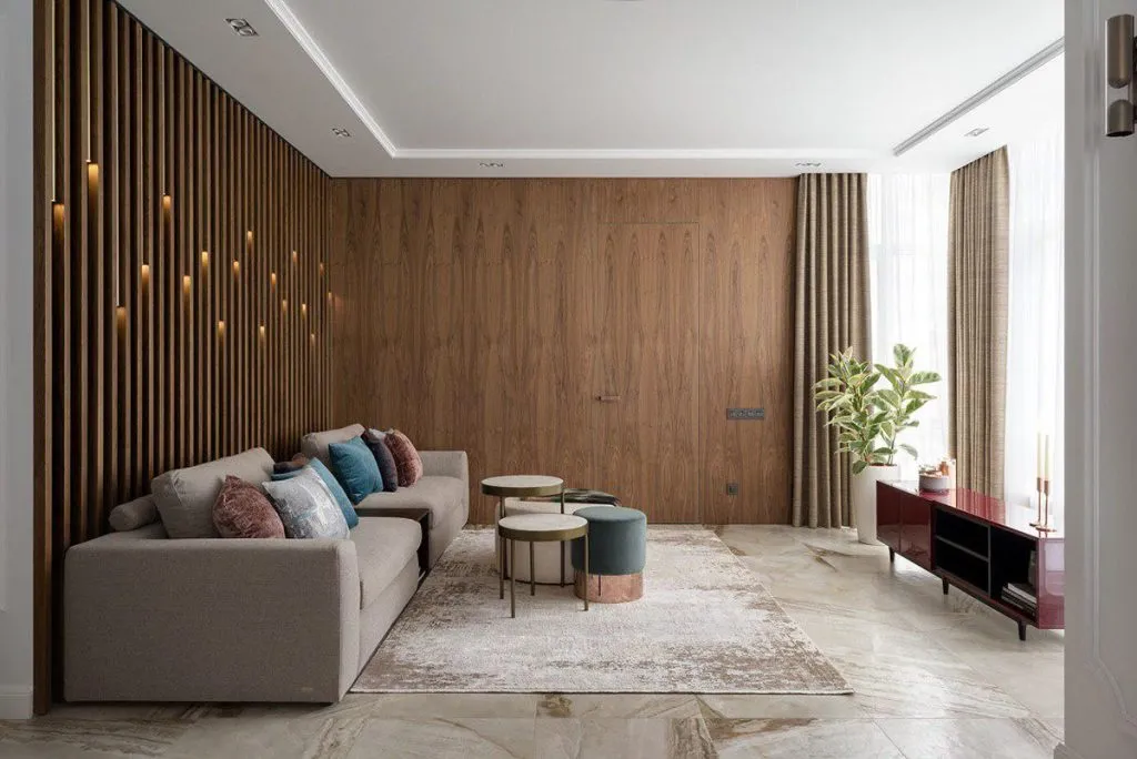- التناسق اللوني: اختر لون بديل الخشب أغمق بدرجة واحدة من لون الجدران لإبراز التباين الجمالي.