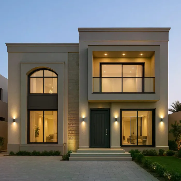 - تصاميم هندسية تبرز التفاصيل المعمارية للفيلا.